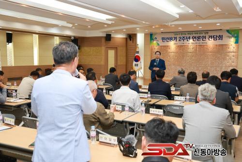 °£´ãȸ´Â ¹Î¼± 8±â Ãâ¹ü 2ÁÖ³âÀ» ¸Â¾Æ ÁÖ¿ä ¼º°ú¿Í ±ºÁ¤ ¿î¿µ ¹æÇâÀ» ¹àÈ÷°í ¾ð·ÐÀΰú ¼ÒÅëÇÏ´Â ½Ã°£À» °®°íÀÚ ¸¶·ÃÇß´Ù.