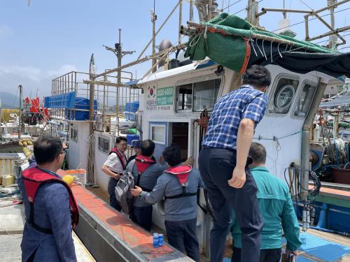 ƯÈ÷ À̳¯ ÇÕµ¿Á¡°ËÀº ÇØ¾ç¼ö»êºÎ ¾î¾÷ÀÚ¿øÁ¤Ã¥°ü(ÃÖÇöÈ£)ÀÌ Á÷Á¢ °ÝÆ÷Ç׿¡ ¹æ¹®ÇÏ¿© ¾î¾÷Àε鿡°Ô ÃâÇ×Àü ¾ÈÀüÁ¡°Ë »ýȰÈ, ±¸¸íÁ¶³¢ Âø¿ë, ¹«¼±¼³ºñ(¹«Àü±â) ¹× À§Ä¡¹ß½ÅÀåÄ¡ »ó½Ã Á¤»ó ÀÛµ¿, »ç°í¿¹¹æ ¾ÈÀü¼öÄ¢ Áؼö µîÀ» ÁýÁß Á¡°ËÇßÀ¸¸ç ¾î¼±¿ø »ê¾÷¾ÈÀüºÐ¾ß Á¡°Ëµµ ÇÔ²² ÁøÇàÇß´Ù.