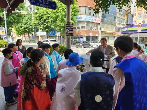 À̳¯ µ¿ ÁÖ¹ÎÀÚġȸ À§¿øµéÀÌ ¸¶À»Çؼ³»ç·Î ³ª¼± °¡¿îµ¥ Áß¾ÓÃʱ³ ÇлýµéÀº ÇѺ¹À» Âø¿ëÇÑ Ã¤ ÃæÀ嵿 ¸¶À»»ç¶û並 ½ÃÀÛÀ¸·Î ±ÝÈ£½Ã¹Î¹®È­°ü, µµ·Î¿øÇ¥, µµ±úºñ °ñ¸ñ µîÀ» ¼øÈ¸ÇÏ´Â ½Ã°£À» °¡Á³´Ù.