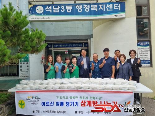 À̳¯ Çà»ç¿¡¼´Â ¼®³²3µ¿ »õ¸¶À»ºÎ³àȸ°¡ ¹«´õ¿î ³¯¾¾¿¡ ½É½ÅÀÌ ÁöÄ£ ¾î¸£½ÅµéÀÌ ¿©¸§Ã¶À» °Ç°ÇÏ°Ô º¸³¾ ¼ö ÀÖµµ·Ï ¿©¸§Ã¶ º¸¾ç À½½ÄÀÎ »ï°èÅÁ 70°³¸¦ Á¤¼º½º·´°Ô ÁغñÇß´Ù. °Åµ¿ÀÌ ºÒÆíÇÑ ¾î¸£½Å °¡Á¤Àº Á÷Á¢ ¹æ¹®ÇÏ¿© À½½ÄÀ» Àü´ÞÇÏ°í ¾î¸£½ÅµéÀÇ ¾ÈºÎ¸¦ »ìÇÇ´Â µî ÀÌ¿ô »ç¶ûÀ» ¸ö¼Ò ½ÇõÇÏ´Â ¶æ±íÀº ½Ã°£À» °¡Á³´Ù.
