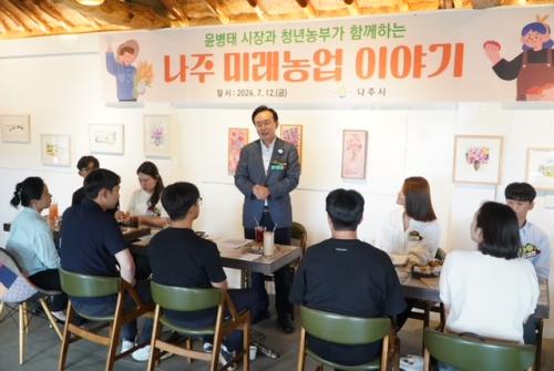 ³ªÁÖ½ÃÀå À±º´Å´ ¡°³ªÁÖ ¹Ì·¡³ó¾÷ÀÇ ¿ª±ºµé°ú ÇÔ²² ³ó¾÷ ¹ßÀü¹æ¾È¿¡ ´ëÇØ ÀǰßÀ» ³ª´©°Ô µÅ ¶æ±í´Ù¡±¸ç ¡°¾ÕÀ¸·Îµµ û³â³ó¾÷ÀΰúÀÇ ¼ÒÅëÀ» °ÈÇÏ°í ½ÇÁúÀûÀÎ Áö¿ø Á¤Ã¥À» ¸¶·ÃÇÏ´Â µ¥ ÃÖ¼±À» ´ÙÇϰڴ١±°í ¸»Çß´Ù.
