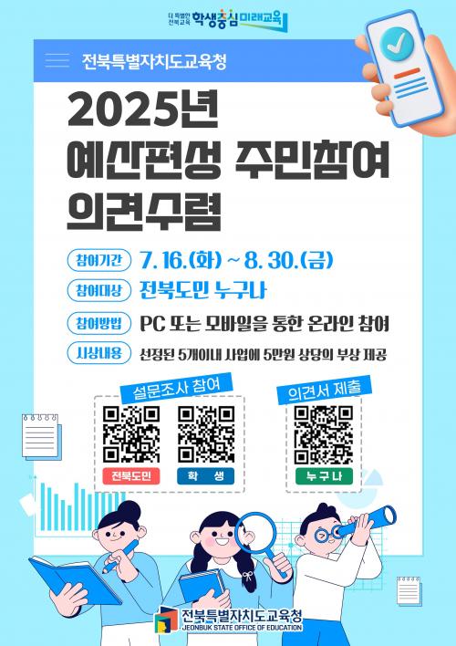 ¼³¹®¿¡¼´Â 2025³â º»¿¹»ê Æí¼º½Ã ÀüºÏƯº°ÀÚÄ¡µµ±³À°Ã» 10´ë ÇٽɰúÁ¦ µî ¿ì¼±ÅõÀÚ ´ë»ó »ç¾÷°ú °¢ Á¤Ã¥º°·Î °¡Àå ÇÊ¿äÇÑ »ç¾÷ÀÌ ¹«¾ùÀÎÁö¿¡ ´ëÇØ µµ¹ÎµéÀÇ ÀǰßÀ» µè´Â´Ù.