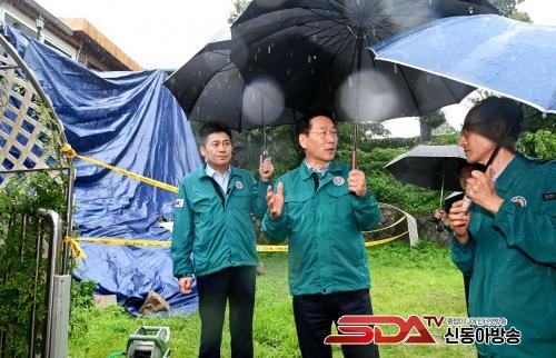 À¯Á¤º¹ ½ÃÀåÀº 18ÀÏ ¿ÀÈÄ Áß±¸ µ¿È¸¶À»°ú °È ¿ÜÆ÷¸®¸¦ ã¾Æ Áֹΰú ÇÔ²² ÇÇÇØ ¹× º¹±¸ ÁøÇà »óȲÀ» Á¡°ËÇß´Ù.