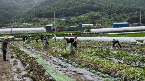 ³ó°¡µéÀÇ ½Ã¸§À» ´Þ·¡±â À§ÇØ ÀÏ¼Õ µ½±â¿¡ Âü¿©ÇÑ Á÷¿øµéÀº 3,000§³ ³ÐÀÌÀÇ ¼ö¹Ú¹ç¿¡¼­ ħ¼ö ³óÀÛ¹° ¹× ¸ÖĪ, ºñ´Ò, Ȱ´ë Á¦°Å¿¡ ³ª¼¹´Ù. º¹±¸ ´çÀÏ¿¡µµ ºñ°¡ ¿¬ÀÌ¾î ³»·ÈÁö¸¸ ³ó°¡¿¡ ÀϼÕÀ» º¸Å´ ¼Õ±æÀ» ¸ØÃßÁö ¾Ê°í À̾îÁ³´Ù.