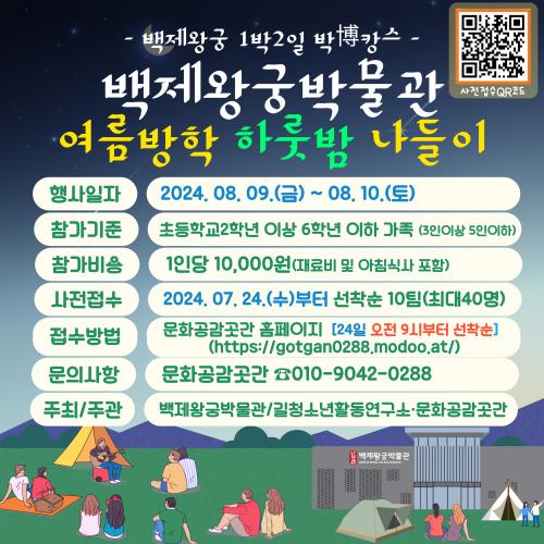 ¹éÁ¦¿Õ±Ã¹Ú¹°°üÀº Ãʵî 2~6Çгâ Àڳడ ÀÖ´Â °¡Á·À» ´ë»óÀ¸·Î 24ÀϺÎÅÍ '¿©¸§¹æÇÐ ¹Ú¹°°ü ³ªµéÀÌ' Âü°¡ ½ÅûÀ» ÁøÇàÇÑ´Ù. ¹®È°ø°¨°÷°£ ´©¸®ÁýÀ» ÅëÇØ °¡Á· 10ÆÀ, 40¸íÀ» ¸ðÁýÇϰí Âü°¡ºñ´Â 1Àδç 1¸¸ ¿øÀÌ´Ù.