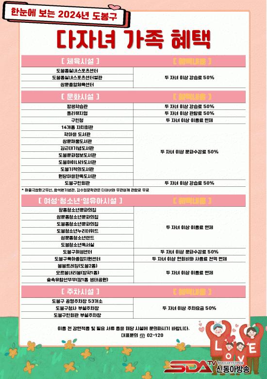 µµºÀ±¸ ¼¿ïÇü ŰÁîÄ«Æä 3°÷°ú µµºÀ±¸À°¾ÆÁ¾ÇÕÁö¿ø¼¾ÅÍ´Â 2ÀÚ³à ÀÌ»ó ¹«·á·Î ÀÌ¿ëÇÒ ¼ö ÀÖÀ¸¸ç µµºÀµ¿½Ç³»½ºÆ÷Ã÷¼¾ÅÍ µî °ø°ø üÀ°½Ã¼³°ú µÑ¸®¹ÂÁö¾ö, µµºÀ±¸¹Îȸ°ü µî ±³À°¡¤¹®È½Ã¼³, Áö¿ª ³» °ø¿µÁÖÂ÷Àå 53°³¼Ò µîÀÇ ÁÖÂ÷½Ã¼³Àº 50% °¨¸é ÇýÅÃÀ» ¹ÞÀ» ¼ö ÀÖ´Ù.