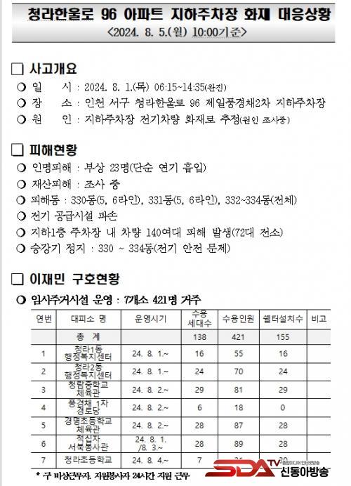 ÀÎõ¼­±¸Ã» "û¶óÇÑ¿ï·Î 96 ¾ÆÆÄÆ® ÁöÇÏÁÖÂ÷Àå È­Àç" ´ëÀÀ»óȲ ¾ð·Ðºê¸®ÇÎ