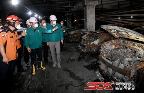 ¸ÕÀú ¼±¸ ºÎ±¸Ã»ÀåÀ¸·ÎºÎÅÍ ÈÀç ÇÇÇØ »óȲ°ú ÇöÀç ´ëÀÀÁ¶Ä¡¿¡ ´ëÇÑ »ó¼¼ÇÑ ºê¸®ÇÎÀ» ¹Þ°í ³ ÀÌÈÄ, ¾ÆÆÄÆ® ÁöÇÏ ÁÖÂ÷ÀåÀ» ¹æ¹®ÇØ ÈÀç·Î ÀÎÇÑ Â÷·® ÇÇÇØ ÇöÀåÀ» ÀçÁ¡°ËÇß´Ù.