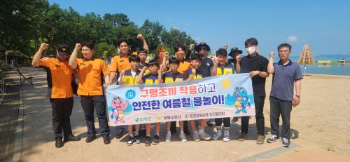Âü¿©ÀÚµéÀº ¾î±ú¶ì, ÇÇÄÏ, Çö¼ö¸·À» Ȱ¿ëÇÏ¿© ¿©¸§Ã¶ ¹°³îÀÌ ¾ÈÀü¹®È­ Á¤ÂøÀÇ Çʿ伺¿¡ ´ëÇØ È«º¸ÇÏ´Â ÇÑÆí, ¹°³îÀ̽ü³À» ã´Â ±º¹Î°ú °ü±¤°´À» ´ë»óÀ¸·Î ¹°³îÀÌ ¾ÈÀü È«º¸ ¹°Ç°À» Àü´ÞÇÏ´Â µî ´Ù¾çÇÑ È«º¸ Ȱµ¿À» ÆîÃÆ´Ù.