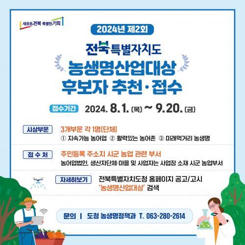 °¢ ºÐ¾ßº°·Î ¿ì¼öÇÑ Ç°Áú·Î ³ó¾÷ »ý»ê¼ºÀ» ³ô¿© ³ó°¡ ¼Òµæ Áõ´ë¿¡ °øÇåÇÑ ÀÚ, ³ó¾î¾÷ÀÎÀÇ ±ÇÀÍ º¸È£¿Í ÁöÀ§ Çâ»ó¿¡ ±â¿©ÇÑ ÀÚ, ½Äǰ ¼ÒÀç µîÀ» ±â¹ÝÀ¸·Î ±â¼ú ¹× »ê¾÷ °£ À¶ÇÕÀ» ÅëÇØ ³ó»ý¸í»ê¾÷ ¹ßÀü¿¡ ±â¿©ÇÑ ÀÚ¸¦ ´ë»óÀ¸·Î °¢ 1¸í(´Üü)À» ¼±¹ßÇÑ´Ù.