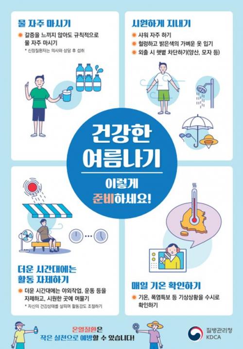 ¿Â¿ÁúȯÀº °Ç° ¼öÄ¢À» ÁöŰ´Â °Í¸¸À¸·Îµµ ¿¹¹æÇÒ ¼ö ÀÖ´Ù. ¡ã ¹° ÀÚÁÖ ¸¶½Ã±â ¡ã ½Ã¿øÇÏ°Ô Áö³»±â ¡ã ´õ¿î ½Ã°£´ë¿¡´Â ÈÞ½ÄÇϱ⸦ ½ÇÃµÇØ¾ß Çϸç, ƯÈ÷ °í·ÉÃþ ¹× ¸¸¼ºÁúȯÀÚÀÇ °æ¿ì ´õ¿î ½Ã°£´ë(12½Ã~17½Ã)¿¡ ¾ß¿Ü ÀÛ¾÷À» ÀÚÁ¦Çϰí, ¾ß¿Ü ÀÛ¾÷ ½Ã¿¡´Â µÑ ÀÌ»ó ÇÔ²² ÇÏ´Â °ÍÀÌ ÁÁ´Ù.