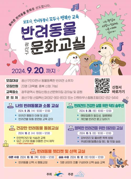[½Åµ¿¾Æ¹æ¼Û=±èÀçÂù±âÀÚ] ±¤ÁÖ ±¤»ê±¸(±¸Ã»Àå ¹Úº´±Ô)´Â ÆêƼÄÏ ¹× ¹Ý·Áµ¿¹° ¾çÀ°¿¡ ÇÊ¿äÇÑ Á¤º¸¸¦ ¹è¿ï ¼ö ÀÖ´Â ¡®¹Ý·Áµ¿¹° ¹®È­±³½Ç¡¯À» ¿À´Â 9¿ù 20ÀϱîÁö ¼±Âø¼ø ¸ðÁýÇÑ´Ù°í ¹àÇû´Ù.