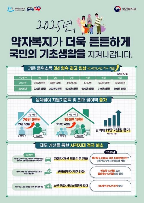 º¸°Çº¹ÁöºÎ Áß¾Ó»ýȰº¸ÀåÀ§¿øÈ¸¿¡¼ Áö³ 7¿ù 25ÀÏ¿¡ °áÁ¤ÇÑ ¹Ù¿¡ µû¸£¸é, 2025³âµµ ±âÁØ ÁßÀ§¼ÒµæÀÌ 4ÀÎ °¡±¸ ±âÁØÀ¸·Î ÃÖ´ë 6.42% ÀλóµÈ´Ù. ÀÌ¿¡ µû¶ó, ÇöÀç 4Àΰ¡±¸ ±âÁØ ÁßÀ§¼Òµæ 572¸¸ 9913¿øÀÌ 2025³â¿¡´Â 609¸¸ 7773¿øÀ¸·Î »ó½ÂÇÒ ¿¹Á¤ÀÌ´Ù.