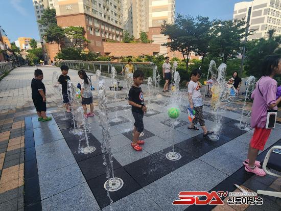 »çÁø=²É°¡¶÷°ø¿ø ³» ¹Ù´ÚºÐ¼ö¿¡ 20¿© ¸íÀÇ ¾ÆÀ̵éÀÌ ¸ð¿© ´õÀ§¸¦ ÇÇÇϰí ÀÖ´Ù.