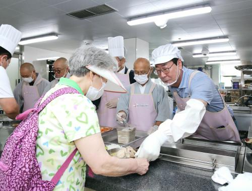 Á¤ ½ÃÀåÀº ¾à 500¸íÀÇ ¾î¸£½Åµé²² ¹è½ÄºÀ»ç¸¦ Çϸ鼭 ¸»º¹À» ¸ÂÀÌÇÏ¿© ¹«´õÀ§ ¾î¸£½ÅµéÀÇ ¾ÈºÎ¸¦ »ìÇÇ´Â µî ¼ÒÅëÀÇ ½Ã°£À» °¡Á³´Ù.