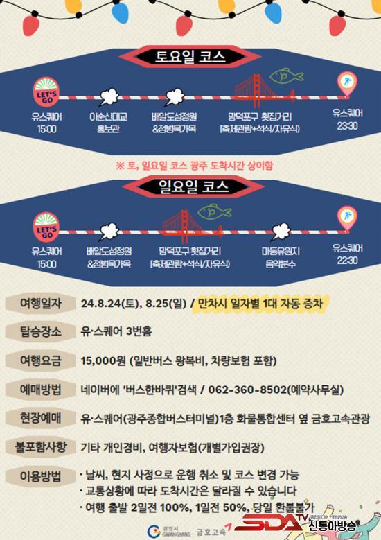 Âü¿©¸¦ ¿øÇÏ´Â »ç¶÷Àº ³²µµÇѹÙÄû ȨÆäÀÌÁö ½ÃƼÅõ¾î ÄÚ³Ê ¡®±¤¾ç¿©Çà °¡´Â ³¯¡¯¿¡¼ Á¢¼öÇϰųª À¯¼± ÀüÈ(¢Ï062-360-8502)·Î »çÀü ¿¹¾àÀÌ °¡´ÉÇÏ´Ù. ÀÌ¿ë¿ä±ÝÀº 1¸¸5õ ¿øÀÌ¸ç ½Äºñ, ÀÔÀå·á, ¿©ÇàÀÚº¸Çè µîÀº Æ÷ÇÔµÇÁö ¾ÊÀº °¡°ÝÀÌ´Ù.