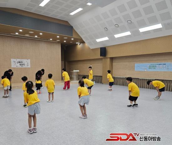 ÇØ´ç ±³À°Àº Àα٠ÃʵîÇб³ ¹æÇÐ ±â°£¿¡ ¸ÂÃß¾î ÁøÇàµÆ´Ù. űǹ«¿¡ ÇÊ¿äÇÑ ±âº»µ¿ÀÛ(¸·±â, ¼±â, ÁÖ¸ÔÁö¸£±â, ¹ßÂ÷±â µî)À» Ãֽа¡¿ä¿Í °áÇÕÇØ ¾È¹«¸¦ ±¸¼ºÇß´Ù. ÀÌ¿¡ Âü¿©ÇÑ ¾ÆÀ̵éÀº ´Ù°°ÀÌ Å±ǹ«¸¦ ¹è¿ì¸ç Ä£ºÐÀ» ½×¾Ò°í ±ÙÀ° ½ºÆ®·¹Äª µîÀ» ÅëÇÏ¿© ¼ºÀåÇÒ ¼ö ÀÖ´Â ±âȸ¸¦ °¡Á³´Ù.