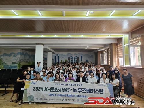 ´Ù¹®È­¡¤ºñ´Ù¹®È­ Çлý 15¸í°ú ±³»ç 8¸íÀ¸·Î ±¸¼ºÇÑ ¡®K-¹®È­»çÀý´Ü¡¯Àº µ¿¾Æ¸®¸¦ Á¶Á÷ÇØ Çѱ¹¾î¿Í Çѱ¹ ¹®È­¸¦ ¾Ë¸®±â À§ÇÑ ¹®È­±³·ù Ȱµ¿À» ÁغñÇØ ¿Ô´Ù. À̵éÀº ¿ìÁŰ½ºÅº¿¡¼­ Çѱ¹¾î¸¦ ¼±Åðú¸ñÀ¸·Î ¹è¿ì´Â 158-Çб³ Çлýµé°ú IUT(Inha University in Tashkent) ³» ¼¼Á¾Çдç Çлýµé¿¡°Ô ³ë·¡¿Í µå¶ó¸¶·Î Çѱ¹¾î¸¦ ¾Ë¸®°í Çѱ¹ÀÇ ¹Î¼Ó³îÀ̸¦ ÇÔ²² Çϸç Áñ°Å¿î ½Ã°£À» º¸³Â´Ù. ¾ç±¹ ÇлýµéÀº ¼­·ÎÀÇ »ý°¢À» ³ª´©°í ¿ìÁŰ½ºÅº ÀüÅëÀ½½Ä ¸¸µé±â Ȱµ¿À» ÇÔ²²ÇÏ¸ç µÎ ³ª¶ó ¹®È­¿¡ ´ëÇÑ ÀÌÇØ¸¦ ³ÐÇû´Ù.
