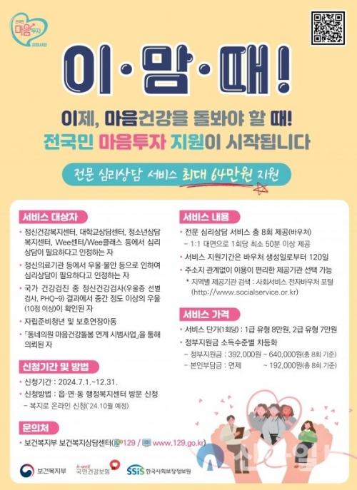 ¾Æ¿ï·¯ ´ã¾ç±ºÀº ¡®Àü±¹¹Î ¸¶À½ÅõÀÚ Áö¿ø»ç¾÷¡¯¿¡ Âü¿©ÇÒ ½É¸®»ó´ã ¼ºñ½º Á¦°ø±â°üÀ» ¿¬Áß ¸ðÁýÇϰí ÀÖÀ¸¸ç, ´ã¾ç±ºº¸°Ç¼Ò Á¤½Å°Ç°º¹Áö¼¾Å͸¦ ÅëÇØ ½ÅûÇÏ¸é µÈ´Ù.