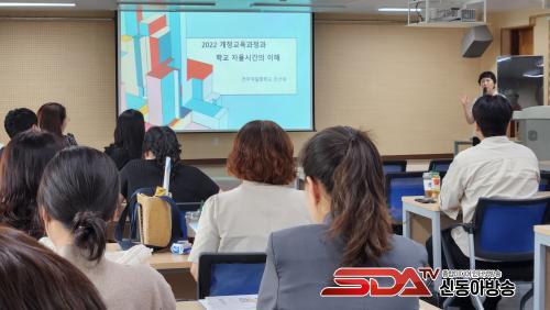 ¿¬¼ö´Â Çб³ÀÚÀ²½Ã°£ ¿¬±¸Çб³ÀÎ ÀüÁÖ´öÀÏÁßÇб³ ¹Î¼±¾Ö ±³»çÀÇ °ÀÇ·Î ½ÃÀ۵Ǿú´Ù. ¡ã2022 °³Á¤ ±³À°°úÁ¤ÀÇ °³Á¤ ÁßÁ¡ ¹× ¹æÇâ, ¡ãÇб³ÀÚÀ²½Ã°£ÀÇ Á¦¾È ¹è°æ¿¡ ´ëÇÑ »ó¼¼ÇÑ ¼³¸í¿¡ ÀÌ¾î¼ ¡ãÇÁ·ÎÁ§Æ® ÇнÀ ¿î¿µ »ç·Ê ³ª´®, ¡ãÇб³ÀÚÀ²½Ã°£ ¼³°è ¹× ¿î¿µ Ȱ¼ºÈ ¹æ¾È ÅäÀǰ¡ ÁøÇàµÇ¾ú´Ù.