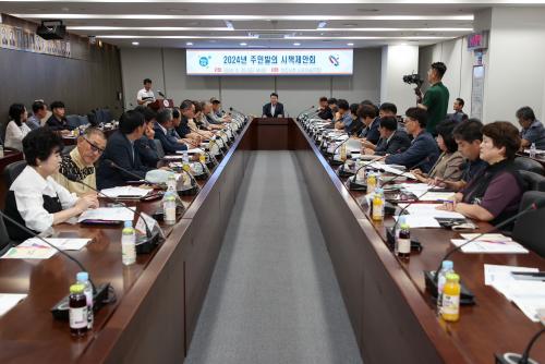 À̳¯ Á¦¾Èȸ´Â ¿À¼ºÈ¯ ½ÃÀå°ú °ü·Ã ºÎ¼­Àå, À¾¸éµ¿ ÁÖ¹ÎÀÚġȸÀå µî 50¿© ¸íÀÌ Âü¼®ÇÑ °¡¿îµ¥ ÁÖ¹ÎÃÑȸ °á°ú º¸°í, ÁֹιßÀÇ ½ÃÃ¥ Á¦¾È ¼³¸í, ÁúÀÇÀÀ´ä ¹× Á¦¾È ½ÃÃ¥ Åä·Ð ¼ø¼­·Î À̾îÁ³´Ù.