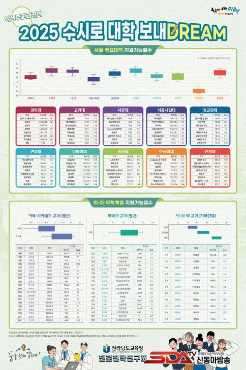¡®2025 ¼ö½Ã·Î ´ëÇÐ º¸³»DREAM¡¯Àº ´ëÇÐ °ø°³ ÀԽà °á°ú ÀÚ·á¿Í ÃàÀûµÈ ¿¬±¸È¸ ÀÚ·á µîÀÇ Åë°è ºÐ¼®À» ÅëÇØ ¼¿ï ÁÖ¿ä ´ëÇаú Àü³²´ëÇб³, ÀÇÄ¡ÇÐ°è¿ µî ÇÕ°Ý °¡´É µî±Þ°ú ±³°ú ȯ»ê Á¡¼ö¸¦ ¿¹ÃøÇß´Ù.