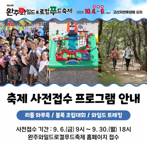 »çÀüÁ¢¼ö´Â 9¿ù 6ÀϺÎÅÍ 30ÀϱîÁö ÃàÁ¦ ȨÆäÀÌÁö¸¦ ÅëÇØ °¡´ÉÇϸç ÀÚ¼¼ÇÑ »çÇ×Àº ¿ÏÁÖ¿ÍÀϵå&·ÎÄÃǪµåÃàÁ¦ÃßÁøÀ§¿øÈ¸(063-290-3978)·Î ¹®ÀÇÇÏ¸é µÈ´Ù.