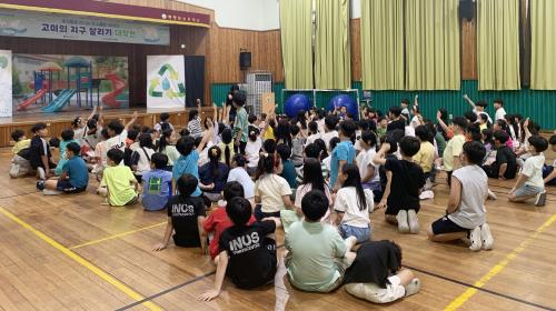 °ø¿¬Àº Áö±¸¿Â³È·Î ÁýÀ» ÀÒ°í ±¾ÁÖ¸²¿¡ óÇÑ ºÏ±Ø°õ ¡®°í¹Ì¡¯°¡ ´Ù½Ã ºÏ±ØÀ¸·Î µ¹¾Æ°¡ ÇູÇÏ°Ô »ì ¼ö ÀÖµµ·Ï Áö±¸ »ì¸®±â ´ëÀÛÀüÀ» ÆîÄ¡´Â ³»¿ëÀ¸·Î ±âÈÄÀ§±â¶ó´Â »çȸ¹®Á¦¸¦ ÃʵîÇлýµéÀÇ ´«³ôÀÌ¿¡ ¸ÂÃç ÀÎÇü±Ø ¹ÂÁöÄà ÇüÅ·ΠÀü´ÞÇß´Ù. ƯÈ÷ Áö±¸¿Âµµ »ó½Â ¿äÀÎÀ» ÇÔ²² ã¾Æº¸´Â Âü¿©Çü °ø¿¬À¸·Î ¸ôÀÔµµ¸¦ ³ô¿© ÇлýµéÀÇ È£ÀÀÀ» À̲ø¾ú´Ù.