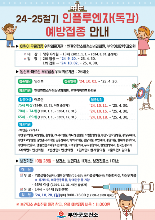 ºÎ¾È±º ÀÚü »ç¾÷À¸·Î ¿À´Â 10¿ù 28ÀϺÎÅÍ´Â º¸°Ç¼Ò¡¤Áö¼Ò¡¤Áø·á¼Ò¿¡¼ ±âÃÊ»ýȰ¼ö±ÞÀÚ, Â÷»óÀ§°èÃþ, ½ÉÇÑ Àå¾ÖÀÎ(±¸1~3±Þ), ±¹°¡À¯°øÀÚ(º»ÀÎ), ´Ù¹®È°¡Á¤ µî ÀÇ·áÃë¾à°èÃþ ´ë»ó ¹«·á Á¢Á¾°ú 14¼¼~64¼¼ ÀϹݱº¹Î À¯·á Á¢Á¾(º¸°Ç¼Ò Á¢Á¾ºñ¿ë 1¸¸ 1000¿ø)À» ÃßÁøÇÑ´Ù.