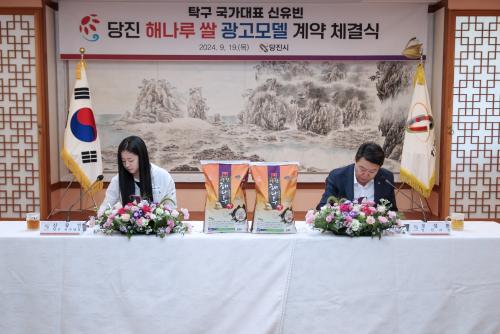 19ÀÏ ´çÁø½Ãû¿¡¼ ¿¸° ü°á½Ä¿¡´Â ¿À¼ºÈ¯ ´çÁø½ÃÀå°ú ½ÅÀ¯ºó ¼±¼ö°¡ Âü¼®ÇØ ÇØ³ª·ç½Ò ±¤°í¸ðµ¨ °è¾àÀ» ü°áÇß´Ù. ½Ã´Â ¼¼°èÀûÀÎ ½ºÆ÷Ã÷ ½ºÅ¸·Î ¼ºÀåÇÑ ½ÅÀ¯ºó ¼±¼öÀÇ ±àÁ¤ÀûÀÌ°í °Ç°ÇÑ ¿¡³ÊÁö¿¡ ÇØ³ª·ç½ÒÀÇ °íǰÁú À̹ÌÁö°¡ ´õÇØÁ® ¼ÒºñÀڵ鿡°Ô ÁÁÀº ÀλóÀ» ³²±æ °ÍÀ¸·Î ±â´ëÇϰí ÀÖ´Ù.