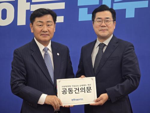 ±è°ü¿µ ÀüºÏƯº°ÀÚÄ¡µµÁö»ç, °±âÁ¤ ±¤ÁÖ±¤¿ª½ÃÀå, ±è¿µ·Ï Àü³²µµÁö»ç, ¿À¿µÈÆ Á¦ÁÖÆ¯º°ÀÚÄ¡µµÁö»ç µî ºñ¼öµµ±Ç ´õºÒ¾î¹ÎÁÖ´ç ¼Ò¼Ó ±¤¿ªÀÚÄ¡´ÜüÀå 4¸íÀº Áö¹æÆ¯ÈÇü °¡¾÷»ó¼Ó°øÁ¦ Á¦µµ °³¼±¾ÈÀÇ ±¹È¸ Åë°ú¸¦ °øµ¿ °ÇÀÇÇϱâ·Î ¶æÀ» ¸ð¾Ò´Ù.