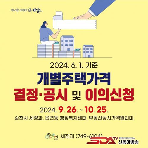 °³º°ÁÖÅð¡°ÝÀº ¼øÃµ½Ã ´©¸®Áý(https://www.suncheon.go.kr)°ú ºÎµ¿»ê°ø½Ã°¡°Ý¾Ë¸®¹Ì(https://www.realtyprice.kr)¸¦ ÅëÇØ ¿¶÷ °¡´ÉÇϰí, °¡°Ý¿¡ ÀÌÀǰ¡ ÀÖ´Â ¼ÒÀ¯ÀÚ µîÀº 10¿ù 25ÀϱîÁö ¼øÃµ½Ã ¼¼Á¤°ú ¶Ç´Â °¢ À¾¸éµ¿ ÇàÁ¤º¹Áö¼¾ÅÍ¿¡ ÀÌÀÇ ½Åû¼¸¦ Á¦ÃâÇÏ¸é µÈ´Ù.