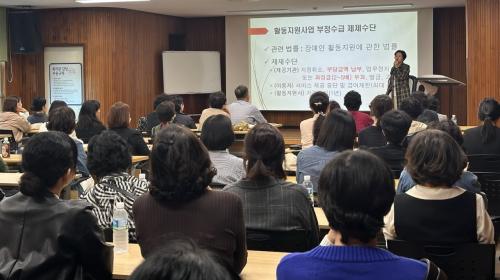 À̹ø ±³À°Àº ½Å±Ô Á¦°ø±â°üÀÇ ¾ÈÁ¤ÀûÀÎ ¿î¿µ°ú Ȱµ¿Áö¿ø»çÀÇ ¿ª·® °È¸¦ ÅëÇÑ ¼ºñ½º Áú Çâ»óÀ» ¸ñÇ¥·Î ¸¶·ÃµÈ ÀÚ¸®·Î, ½Å±Ô ÁöÁ¤µÈ Àå¾ÖÀÎȰµ¿Áö¿ø»ç¾÷ Á¦°ø±â°ü¿¡¼ ±Ù¹«Çϴ Ȱµ¿Áö¿ø»ç 100¿© ¸íÀÌ Âü¼®Çß´Ù.