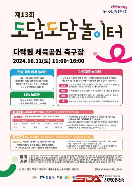 ¿ÃÇØ·Î Á¦13ȸ¸¦ ¸ÂÀº ¡¸µµ´ãµµ´ã ³îÀÌÅÍ¡¹´Â µµºÀ±¸°¡ ÁÖÃÖÇÏ°í µµºÀ±¸À°¾ÆÁ¾ÇÕÁö¿ø¼¾ÅͰ¡ ÁÖ°üÇÏ´Â ÃàÁ¦·Î ´ö¼º¿©ÀÚ´ëÇб³, µµºÀÀå¾ÖÀÎÁ¾ÇÕº¹Áö°ü, ´ëÇÑÀû½ÊÀÚ ¼¿ïÁö»ç, ±Â³×À̹ö½º µî ÃÑ 19°³ÀÇ ¹Î¡¤°ü ´Üü°¡ Âü¿©ÇÑ´Ù.