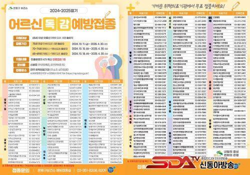 ¾î¸£½Å ÀÎÇ÷翣ÀÚ ¹«·á ¿¹¹æÁ¢Á¾Àº 11ÀϺÎÅÍ 75¼¼ ÀÌ»ó ¾î¸£½ÅÀ» ´ë»óÀ¸·Î ÁøÇàµÈ´Ù. ¿À´Â 15ÀϺÎÅÍ´Â 70¼¼ºÎÅÍ 74¼¼±îÁö ¾î¸£½Å, ¿À´Â 18ÀϺÎÅÍ´Â 65¼¼ºÎÅÍ 69¼¼±îÁö ¾î¸£½ÅÀ» ´ë»óÀ¸·Î ÁøÇàµÈ´Ù.