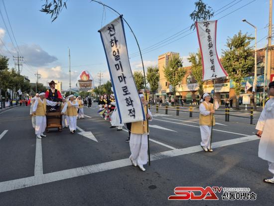 ¿ø´Ô ÇàÂ÷ ÀçÇöÇà»ç¿¡ Âü¿©ÇÑ 200¿© ¸íÀÇ ½Ã¹ÎÀº °æÂû¼¿Í »çȸ(ºÀ»ç)´ÜüÀÇ Áö¿øÀ¸·Î ±¤¾ç¹®È¿ø¿¡¼ºÎÅÍ ÃàÁ¦Àå±îÁöÀÇ ¾à 1.3km °Å¸®¸¦ ÇàÁøÇßÀ¸¸ç Á¤ÀÎÈ ½ÃÀå°ú ¿ì½Â¹è ÃàÁ¦ÃßÁøÀ§¿øÀå¿¡°Ô ¹é¿î»ê ½¡ºÒÈ·Î Á¶Çü¹°À» Àü´ÞÇÏ´Â ÀÌ»ö ÆÛÆ÷¸Õ½º¸¦ ÆîÃÆ´Ù.