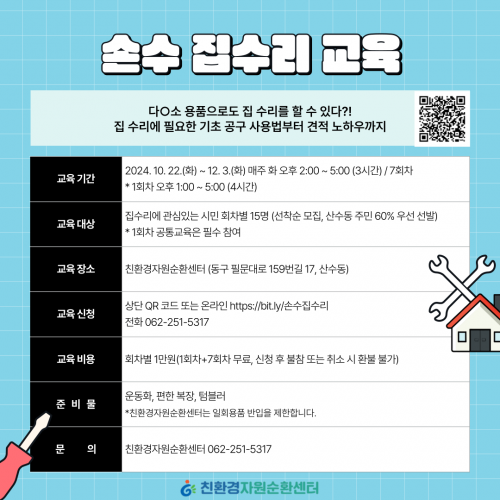µ¿±¸ ÁÖ¹ÎÀ̶ó¸é ´©±¸³ª Âü¿©ÇÒ ¼ö ÀÖÀ¸¸ç, ȸÂ÷º° 15¸í ¼±Âø¼ø ¸ðÁýÇÑ´Ù. Âü°¡ºñ´Â ȸÂ÷º° 1¸¸ ¿øÀÌ´Ù. Âü°¡ ½ÅûÀº QRÄÚµå(¸µÅ©), ÀüÈ(062-251-5317), ºí·Î±×(ģȯ°æÀÚ¿ø¼øÈ¯¼¾ÅÍ)¿¡¼ °¡´ÉÇÏ´Ù.