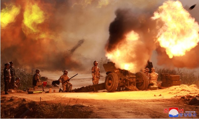»çÁø=ºÏÀº Æò¾ç »ó°øÀÇ ¹«Àαâ ħÅõ¿¡ ½Å¿ø½ÄÀÌ È®ÀÎÇØÁÙ ¼ö ¾ø´Ù°í ÇÏÀÚ ëÅÀ» ÁÖ¹ü, °ø¹üÀ̶ó¸ç ±¹°æ ±ÙóÀÇ Æ÷º´ ºÎ´ë¿¡ »ç°Ý ´ë±â ¸í·ÉÀ» ³»·È´Ù. ºÏ Æ÷º´Çб³ÀÇ Æ÷»ç°Ý Àå¸é. Á¶¼±Áß¾ÓÅë½Å