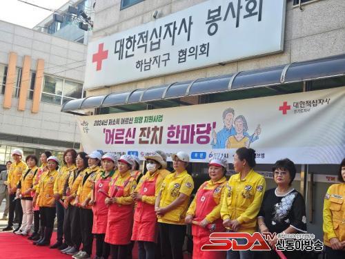 Çϳ²Áö±¸ÇùÀÇȸ ¼Ò¼Ó Àû½ÊÀÚ ºÀ»ç¿ø 130¸íÀº 4ÀÏ¿¡ °ÉÃļ ¾î¸£½ÅµéÀ» À§ÇÑ ½Ä»ç¿Í °ø¿¬À» ÁغñÇßÀ¸¸ç, À̳¯ ¸¸µç ¹Ø¹ÝÂù(»ç°ñ±¹, ¹«±¹, Àü(°íÃßÀü,±èÄ¡Àü,²¢ÀÙÀü,µ¿±×¶û¶¯), µµ¶óÁö³ª¹°, ¸êÄ¡²Ê¸®ººÀ½)Àº Âü¼® ¾î¸£½Å 130¸íÀ» Æ÷ÇÔÇÏ¿© Çϳ²½Ã °ü³» Ãë¾à°èÃþ 200¼¼´ë¿¡°Ô Àü´ÞµÇ¾ú´Ù.