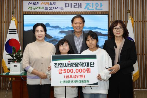 Áø¾È ²Þµ¿»ê Áö¿ª ¾Æµ¿ ¼¾ÅÍ(¼¾ÅÍÀå °í¿µ¹Ì)¿¡¼ Áö³ 21ÀÏ Áø¾È»ç¶ûÀåÇÐÀç´Ü¿¡ 50¸¸¿øÀÇ ÀåÇбÝÀ» ±âŹÇÏ¿´´Ù.