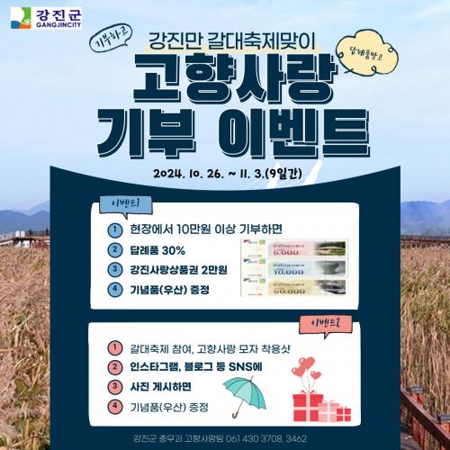 °íÇâ»ç¶û±âºÎÁ¦ Âü¿©¸¦ ¿øÇÏ¸é Æ÷ÅÐ »çÀÌÆ®¿¡¼ ¡®°íÇâ»ç¶û±âºÎÁ¦¡¯¸¦ °Ë»ö ÈÄ °íÇâ»ç¶ûeÀ½ »çÀÌÆ®¿¡¼ ¿Â¶óÀÎÀ¸·Î ±âºÎÇϰųª, Àü±¹ ³óÇù¿¡¼ ´ë¸éÀ¸·Î ±âºÎÇÏ¸é µÈ´Ù. ´õ ÀÚ¼¼ÇÑ »çÇ×Àº °Áø±ºÃ» Ãѹ«°ú(061-430-3708, 3462)·Î ¹®ÀÇÇÏ¸é µÈ´Ù.