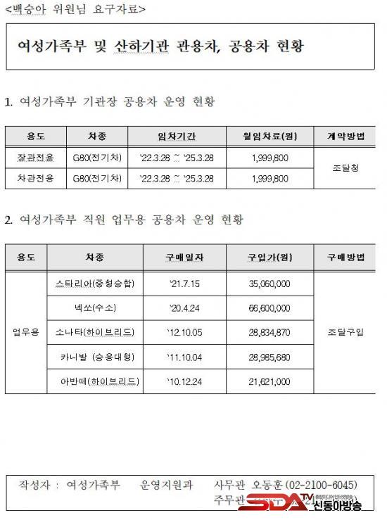 ¡à ±¹È¸ ¿©¼º°¡Á·À§¿øÈ¸ ¹é½Â¾Æ ÀÇ¿ø(´õºÒ¾î¹ÎÁÖ´ç)ÀÌ °ø°³ÇÑ ¡®Àå°ü½Ç Á÷¿ø 4¸í ±Ù¹«ÇöȲ'¿¡ µû¸£¸é Àå°üÀÌ »çÅðÇÑ 2¿ù 20ÀÏ ÀÌÈÄ ºñ¼°ü A°úÀåÀº 9¿ù 7ÀϱîÁö 7°³¿ù°£ Àå°ü ¾øÀÌ ±Ù¹«ÇÏ´Ù ÇöÀç ÆÄ°ß ÁßÀÎ °ÍÀ¸·Î ³ªÅ¸³µ´Ù. ÁÖ¿äÀÏÁ¤ °ü¸® ¹× º¸°í ÃѰý, °¢ ºÎ¼ Çö¾È ¾÷¹«º¸°í ¹× º¸ÁÂ, Á¤Ã¥Çö¾È Áö½Ã»çÇ× Àü´Þ ¹× È®ÀÎÇÏ´Â ÀÚ¸®ÀÌ´Ù.