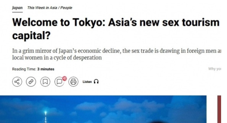 Áö³ 17ÀÏ È«Äá Àϰ£Áö »ç¿ì½ºÂ÷À̳ª¸ð´×Æ÷½ºÆ®(SCMP)´Â '¾Æ½Ã¾ÆÀÇ »õ·Î¿î ¼½½º °ü±¤ÀÇ ¼öµµ, µµÄì¿¡ ¿Â °É ȯ¿µÇÑ´Ù'¶ó´Â Á¦¸ñÀÇ ±â»ç¿¡¼ ¿Ü±¹ÀÎ »ó´ë ¼º¸Å¸Å°¡ Áõ°¡ÇÏ´Â ÀϺ»ÀÇ »óȲÀ» º¸µµÇß´Ù.