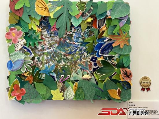 Çù·Â ¹Ì¼ú ºÎ¹® ÃÖ¿ì¼ö»óÀ» ¼ö»óÇÑ ¿Õ°îÃʵîÇб³(±³Àå ÀÌÁ¤ÀÓ)´Â 5, 6Çгâ Çлý 6¸íÀÌ Âü¿©ÇØ ¡®¿ì¸®ÀÇ ½£¡¯À» ÁÖÁ¦·Î ÇÑ ÀÛǰÀ» ÃâÇ°ÇØ ´«±æÀ» ²ø¾ú´Ù. ÇлýµéÀº Á¡Åä·Î ½£À» ÁöŰ´Â Á¤·ÉÀ» Çü»óÈÇϰí, ³ª¹µÀÙ¿¡ ´Ùä·Î¿î »ö»óÀÇ ¹°°¨À» Ä¥ÇØ ĵ¹ö½º¿¡ Âï´Â ±â¹ýÀ» Ȱ¿ëÇßÀ¸¸ç, ÆóÀâÁö¸¦ ¿À·Á ºÙ¿© ½£ÀÇ Ç³¿ä·Î¿ò°ú ¼ÒÁßÇÔÀ» »ýµ¿°¨ ÀÖ°Ô Ç¥ÇöÇß´Ù.
