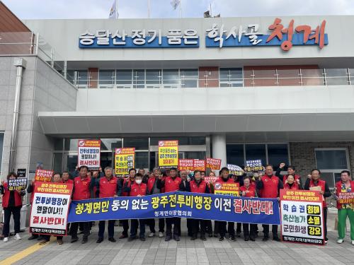 ¹«¾È±º û°è¸é ÀÌÀåÇùÀÇȸ, ±¤ÁÖ ÀüÅõºñÇàÀå ÀÌÀü ¹Ý´ë Ä·ÆäÀÎ ÆîÃÄ