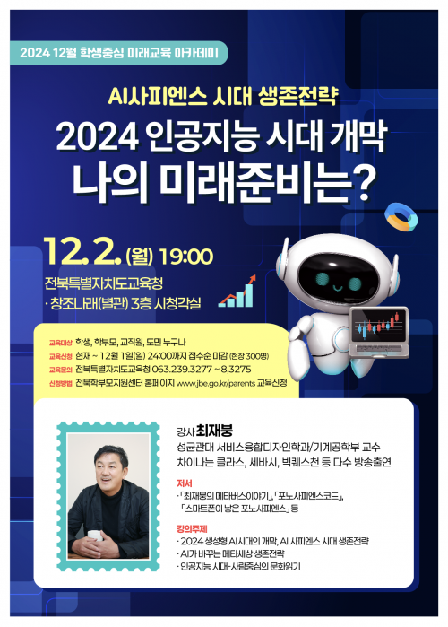 ÃÖ ±³¼ö´Â ¡®AI»çÇÇ¿£½º ½Ã´ë »ýÁ¸Àü·«, 2024 ÀΰøÁö´É ½Ã´ë °³¸· ³ªÀÇ ¹Ì·¡ Áغñ´Â?¡¯À̶ó´Â ÁÖÁ¦·Î °¿¬À» ÁøÇàÇÑ´Ù.