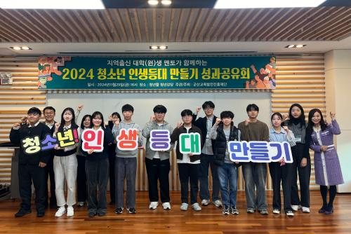 ¡®Ã»¼Ò³â Àλýµî´ë ¸¸µé±â¡¯ »ç¾÷Àº Áö¿ªÀÇ ±³À°¿©°Ç°ú Ư¼ºÀ» Àß ÀÌÇØÇϰí ÀÖ´Â ±º»ê Ãâ½Å ´ëÇлýÀÌ ÇнÀ°ú Àλý ±æÀâÀ̰¡ µÇ¾î Áø·Î¡¤ÁøÇÐÀ» °í¹ÎÇÏ´Â °ü³» û¼Ò³âµé¿¡°Ô È¿°úÀûÀÎ ÇнÀ ¹æ¹ý°ú ´ëÇÐ ÁøÇп¡ ´ëÇÑ ½ÇÁúÀûÀÎ µµ¿òÀ» Áö¿øÇϱâ À§ÇØ ÃßÁøµÆ´Ù.