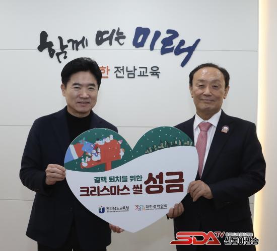 Àü³²±³À°Ã»°ú ´ëÇѰáÇÙÇùȸ ±¤ÁÖÀü³²ÁöºÎ °ü°èÀÚµéÀÌ °áÇÙ ÅðÄ¡¸¦ À§ÇÑ Å©¸®½º¸¶½º ¾Á ¼º±Ý Àü´ÞÀ» ¸¶Ä£ µÚ ±â³äÃÔ¿µ Çϰí ÀÖ´Ù.