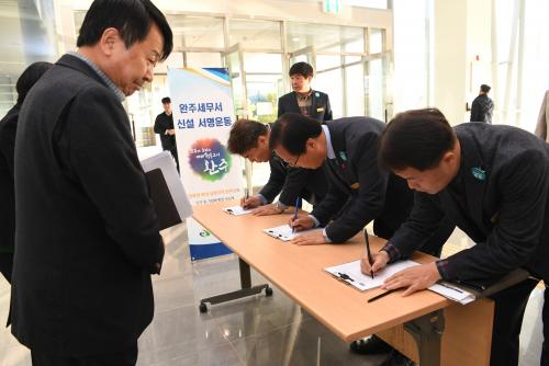 ¿ÏÁÖ¼¼¹«¼ ½Å¼³À» À§ÇÑ ¼¸í¿îµ¿Àº ÀÌ´Þ ¸»±îÁö ÁøÇàµÉ ¿¹Á¤À¸·Î ³»³â »ó¹Ý±â¿¡ ¼¸íÁö¸¦ Áß¾ÓºÎó¿Í ±¹È¸¿¡ Á¦ÃâÇØ ¿ÏÁÖ¼¼¹«¼ ½Å¼³À» ¹Ù¶ó´Â ¿ÏÁÖ±º¹ÎÀÇ ¿°¿øÀ» Àü´ÞÇÒ ¿¹Á¤ÀÌ´Ù.