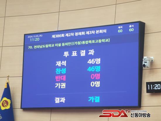 [½Åµ¿¾Æ¹æ¼Û Àü³²=À̽ŵ¿±âÀÚ] Àü¶ó³²µµ±³À°Ã»Àº ¸ñÆ÷ ¿Á¾ÏÁö±¸ ³» (°¡Äª)ÅëÇÕ¸ñÆ÷°íµîÇб³ À̼³ µ¿ÀǾÈÀÌ Àü¶ó³²µµÀÇȸ º»È¸ÀÇ¿¡¼­ 12¿ù 5ÀÏ ÃÖÁ¾ ½ÂÀÎµÆ´Ù°í ¹àÇû´Ù.